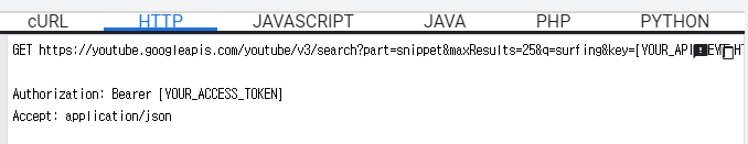 HTTP를 클릭하면 해당 API 주소를 복사해서 사용할 수 있다. 사용할 때는 내가 발급받은 API Key를 넣어 사용해주면 된다.