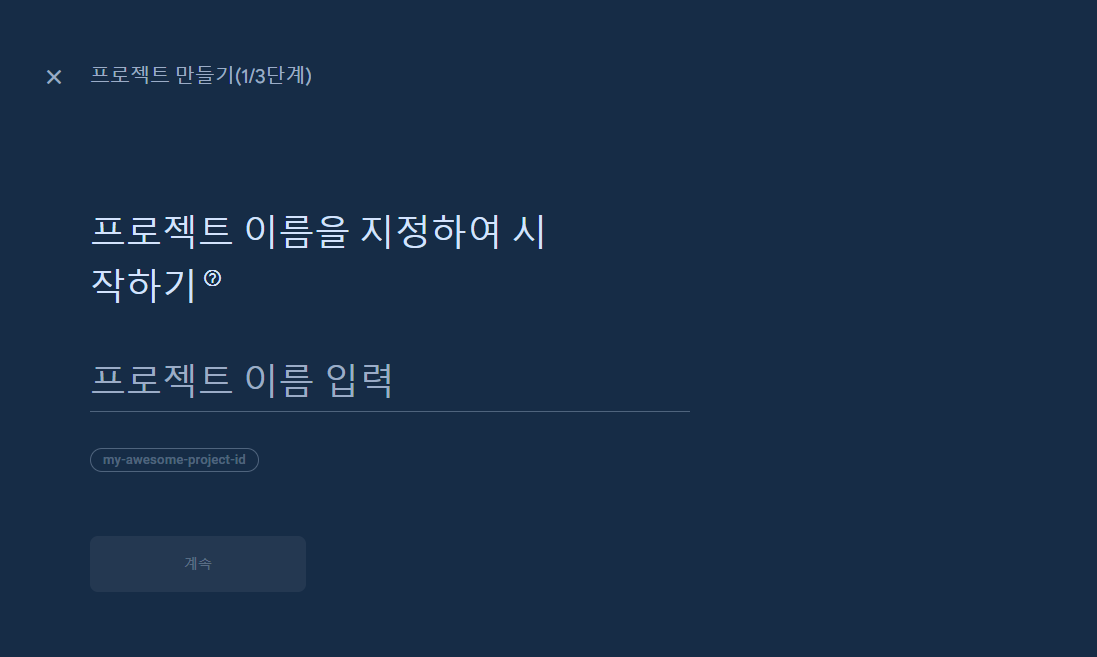 3. 프로젝트 이름을 입력하고 계속 버튼을 누른다.