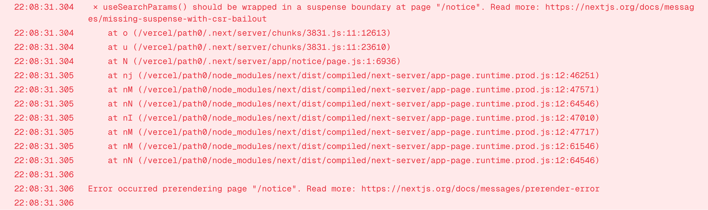 내 코드중 에러가 났던 부분은 notice 컴포넌트이기 때문에 해당 컴포넌트가 있는 main 요소를 suspense로 감싸주었다!