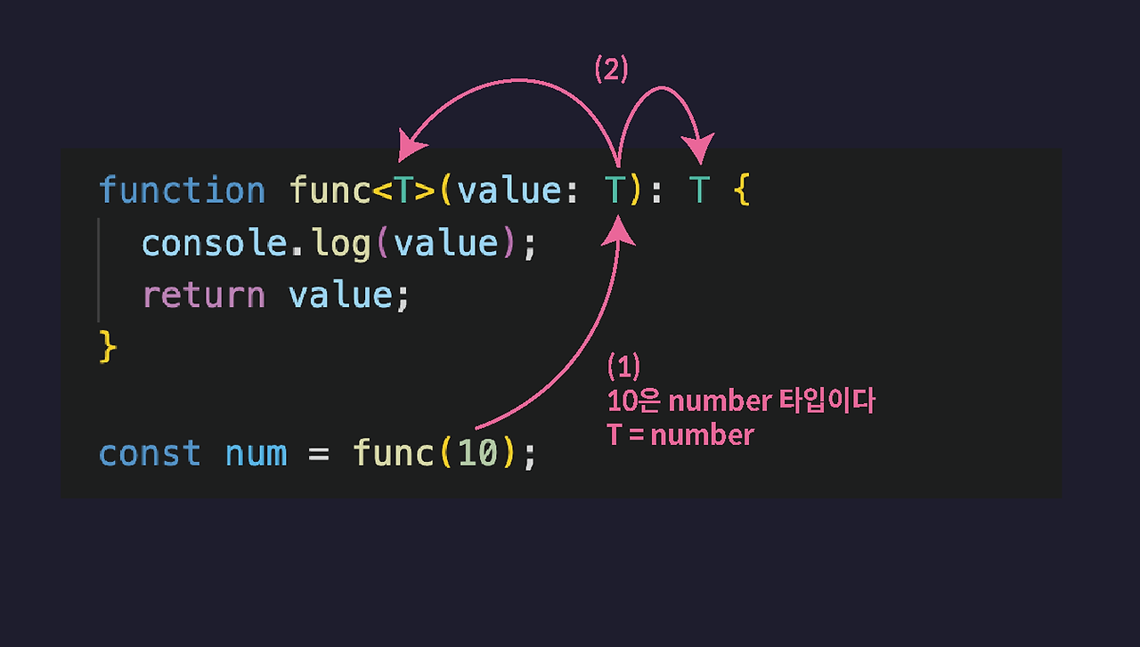 - 즉, 인수로 numver 타입의 값을 전달하면 매개변수 value에 number 타입의 값이 저장되면서 T가 number 타입으로 추론된다.